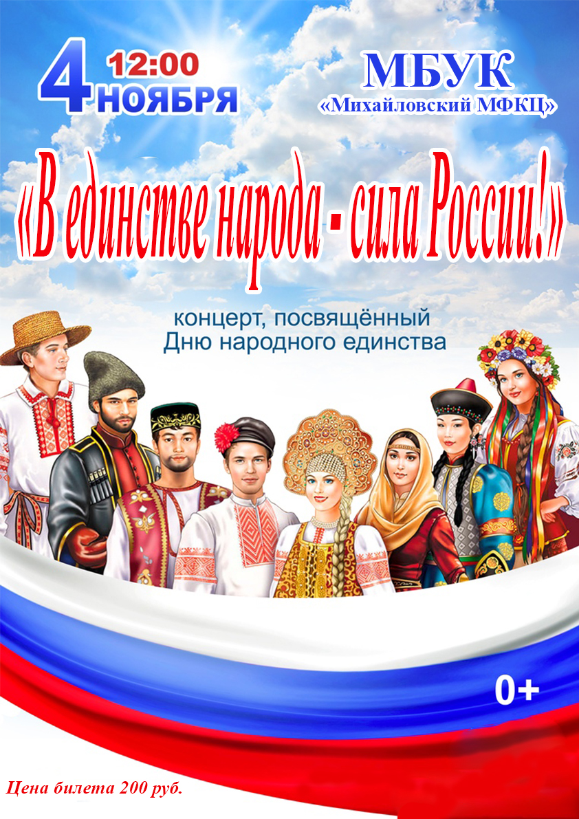 Ждём вас 4 ноября в 12:00 на концерте, посвящённом Дню народного единства, «В единстве народа – сила России!»